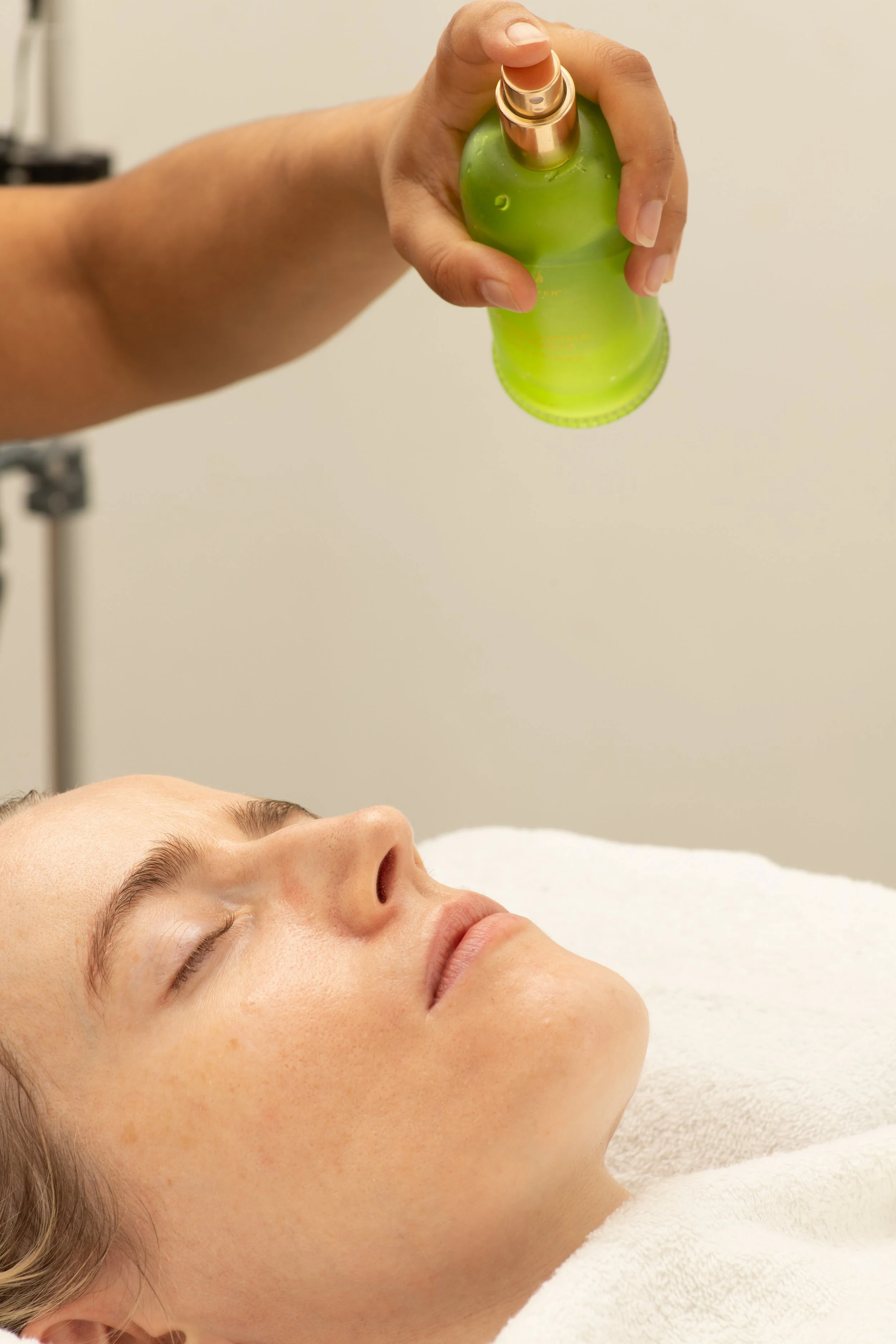 Electrical treatment bed, Hot Cabby for facial towels, Glamcor Lighting, Videography help and direction, Drinks Fridge, Coffee Machine, Couch Roll, Treatment Trolley